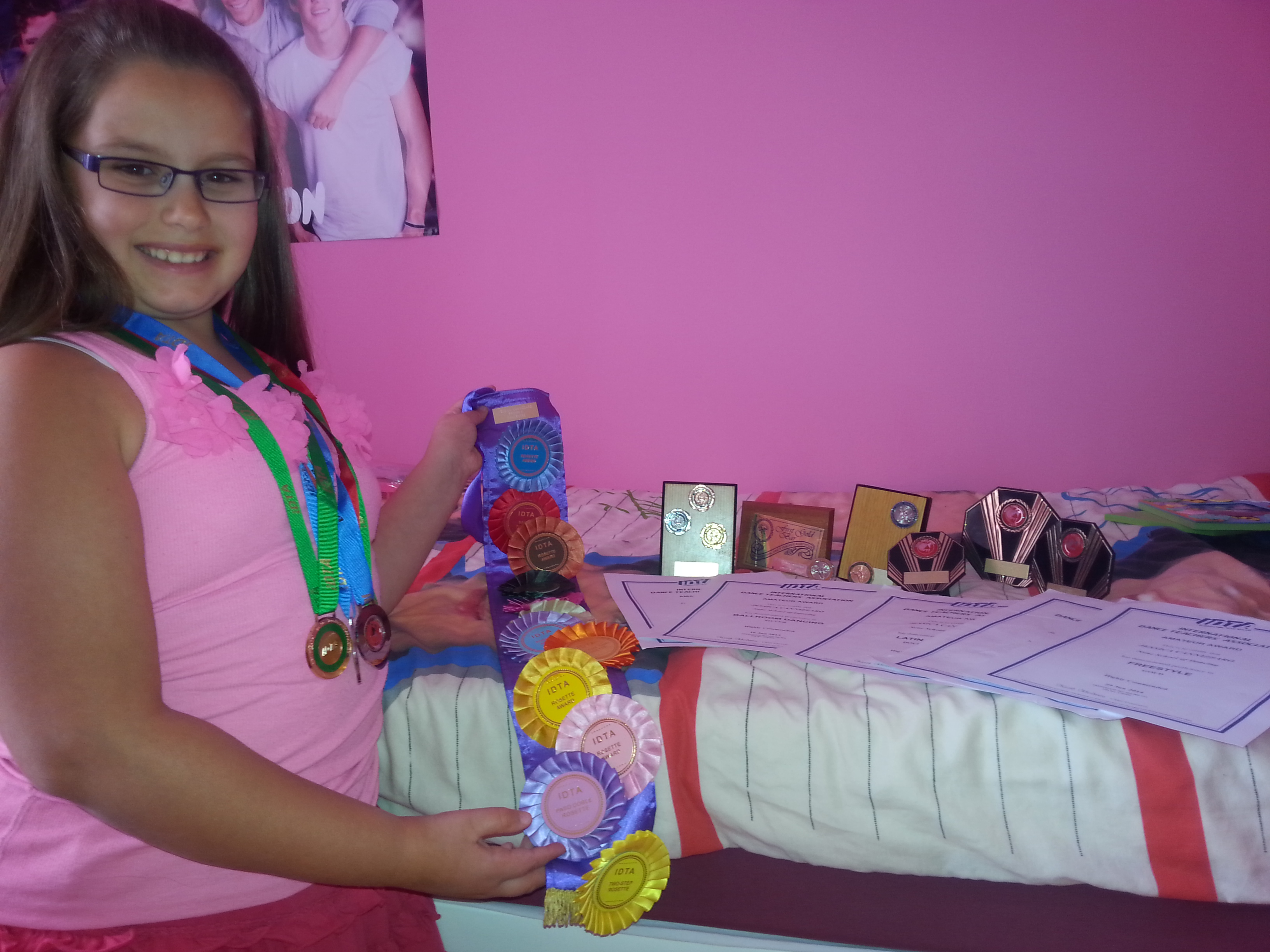 I have been dancing since I was 2 and a half and I’m now 10. They have a bar there so if you’re thirsty you can buy a drink. You get to do all sort’s of exams and after the exam you receive a medal, however if you’re in the younger class you get rosettes. I have many rosette badges and medals on my wall, which I have received over the years.